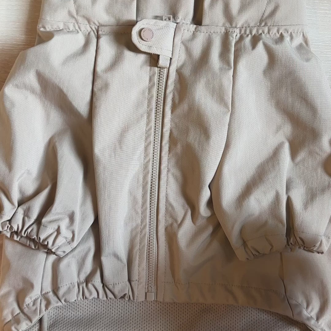 袖口と裾周りには伸縮性があり、水しぶきから愛犬を守り、フード部分には簡単にフィットさせることができる調節可能なアジャスター付き。